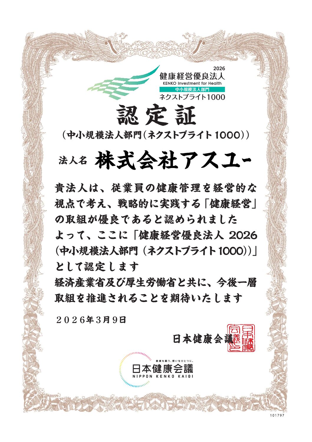 健康経営優良法⼈2026 ネクストブライト1000認定